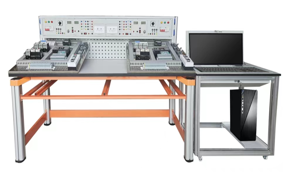 鋼制結(jié)構(gòu),表面氧化噴塑處理,電源輸出包含固定交流輸出:三相五線380V 接插式2組、220V插座式2組,均通過組合開關(guān)進(jìn)行關(guān)斷;可調(diào)直流輸出: 0~24V/2A連續(xù)可調(diào)2組(帶有指針電壓、指針電流表實時監(jiān)控電源變化);固定DC24V/2A電源2組;提供降壓啟動電阻6個,能耗制動電阻2只,提供整流二極管1N5408四個,用于能耗制動電路。另提供單相220V單元插座用于給電腦的供電。 |