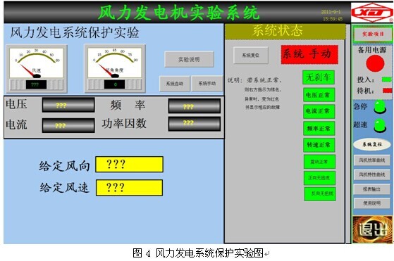 (3)風(fēng)力發(fā)電的主控系統(tǒng), 對(duì)整個(gè)風(fēng)力發(fā)電系統(tǒng)進(jìn)行統(tǒng)一監(jiān)控、管理和安全控制。主要包括監(jiān)控主機(jī)和監(jiān)控軟件、主控系統(tǒng)、多功能測控儀表、模擬風(fēng)系統(tǒng)、風(fēng)力發(fā)電安全系統(tǒng)及各類測量儀器儀表等。